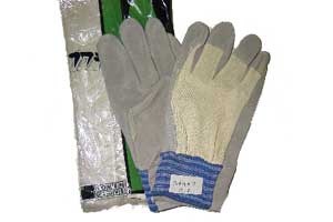 丈夫な床皮の手袋に「胛部分」にメリヤス地を 加工した皮手袋